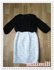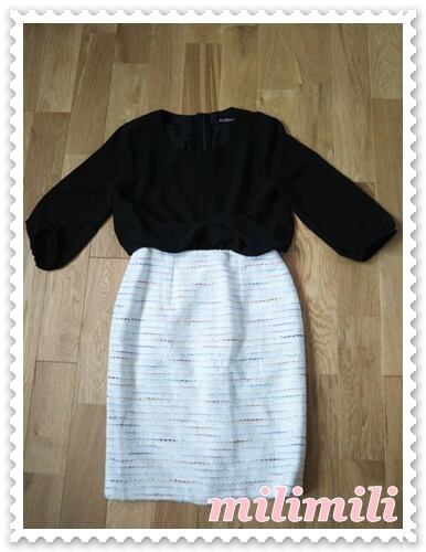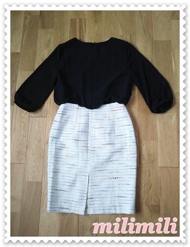 黒シフォンブラウス+タイトスカート『リントンツイード』