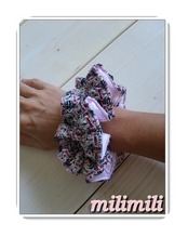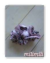 ピンク系MIXツイード×ピンクサテンのシュシュです。